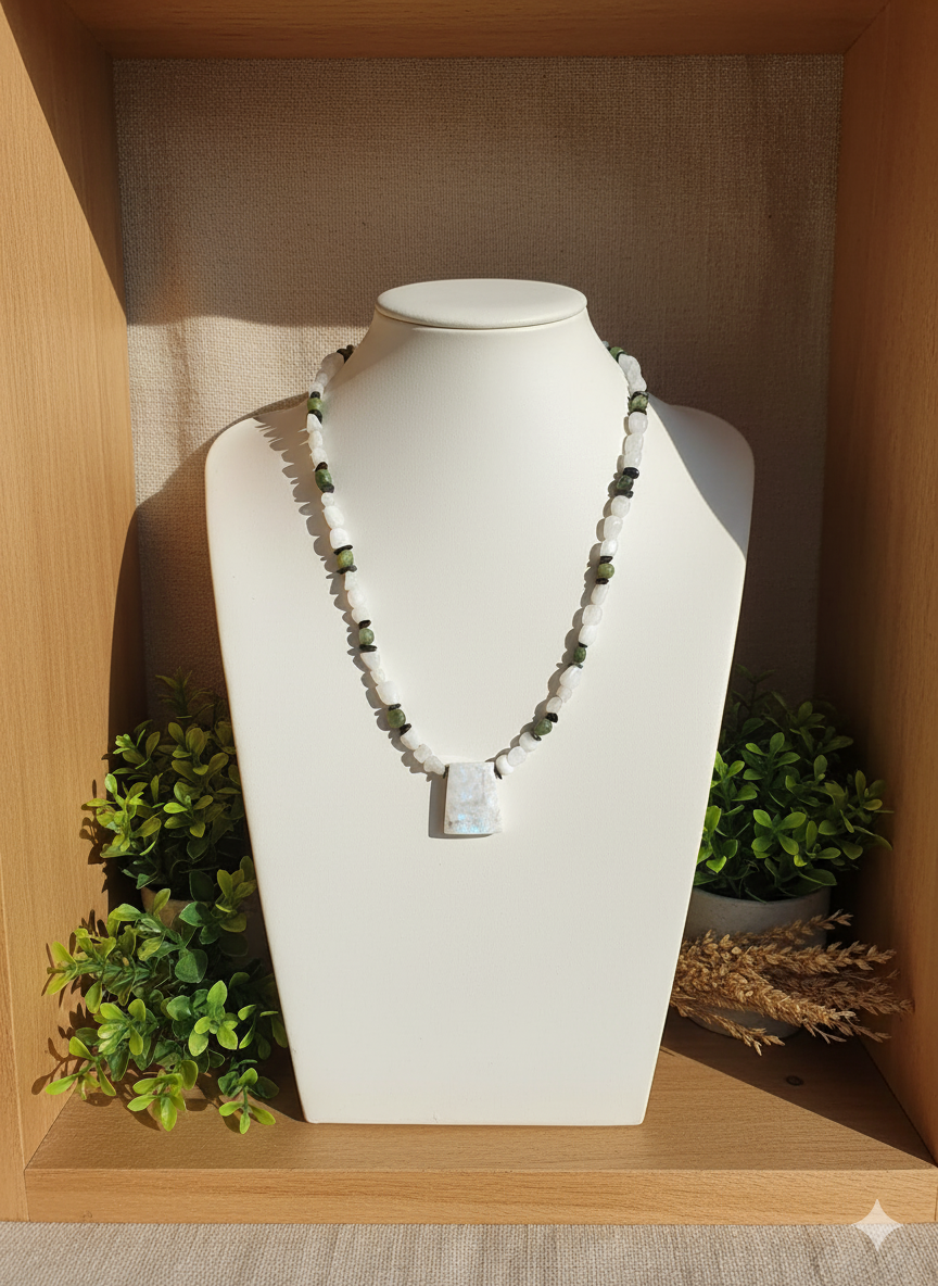 ✨ Şimdi Assalina Doğaltaş Aytaşı Kolye ile tarzını ve enerjini parlat.