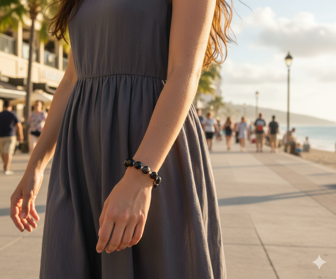 Bu bileklik, sadece faydalarıyla değil, aynı zamanda göz alıcı duruşuyla da vazgeçilmeziniz olacak. Zarif kesimi ve doğal taşın benzersiz dokusu, onu sıradan bir aksesuardan çıkarıp, karakterinizi yansıtan bir imzaya dönüştürüyor.