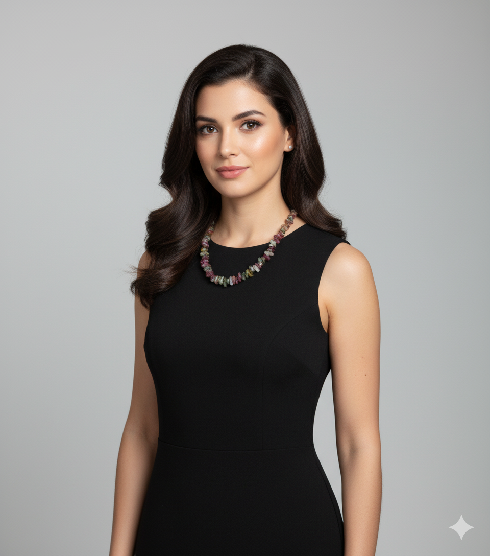 Multicolor Turmalin, renklerin enerjisini taşıyan özel bir taştır. Enerji akışını dengeler, koruyucu bir kalkan oluşturur ve negatif enerjileri uzaklaştırır. Aynı zamanda yaratıcılığı artırdığı ve ruh halini iyileştirdiği bilinir. Garantili ve doğal taş kullanımıyla hazırlanan bu kolye, hem zarif hem de güçlü bir enerji kaynağıdır.