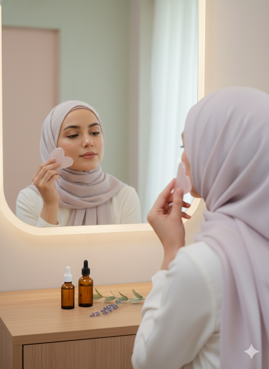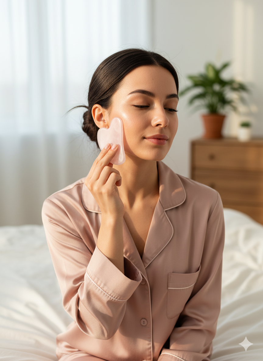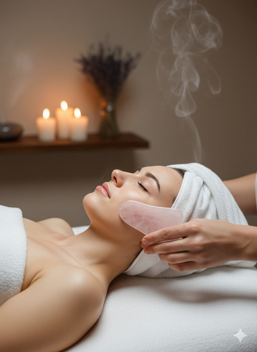 Aşkın ve sevginin taşı Pembe Kuvars, Gua Sha masaj tekniğiyle birleşerek güzelliğinize doğal bir ışıltı kazandırıyor.