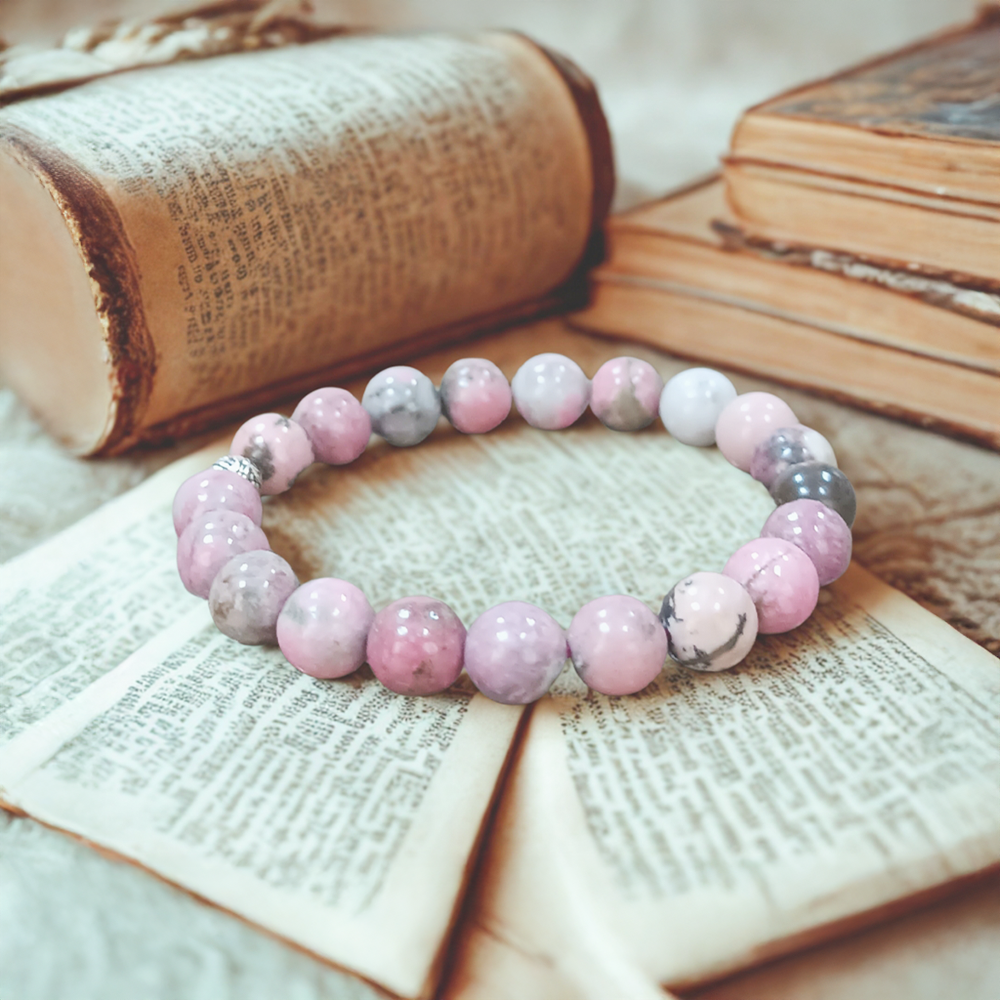 Bilekliğimiz, 6 mm küre kesim taşlardan özenle hazırlanmıştır.