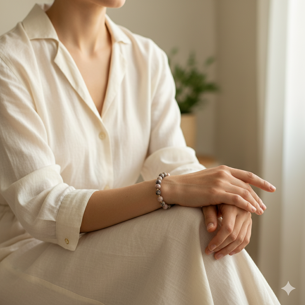 Rodonit bileklik, hem estetik görünümüyle dikkat çeker hem de enerjisiyle ruhunuza denge ve huzur katar.