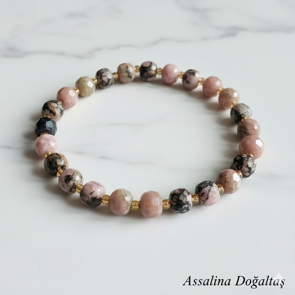 ✨ Assalina Doğaltaş kalitesiyle üretilen her bileklik, %100 doğal ve özenle seçilmiş rodonit taşlarından el işçiliğiyle hazırlanır.