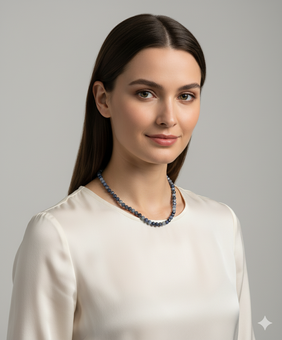 Safir, bilgelik, sadakat ve iç huzurun sembolüdür. Zihinsel odaklanmayı artırır, negatif enerjileri engeller ve ruhsal dengeyi destekler. Tarih boyunca kralların ve bilginlerin taşı olarak kullanılmıştır. Garantili doğal taş kullanımıyla hazırlanan bu kolye, hem estetik hem de enerji açısından güçlü bir tercihtir.