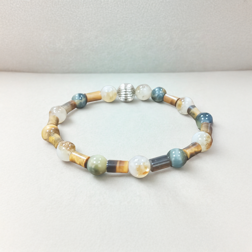 Bilekliğimiz, özenle hazırlanmış karma kesim doğal taşlardan oluşmaktadır.